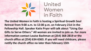 Below is where you can find our upcoming events. We welcome anyone who would like to connect in fellowship and serve the community. You can see the point of contact/more information for each group by clicking on the event on the church calendar.